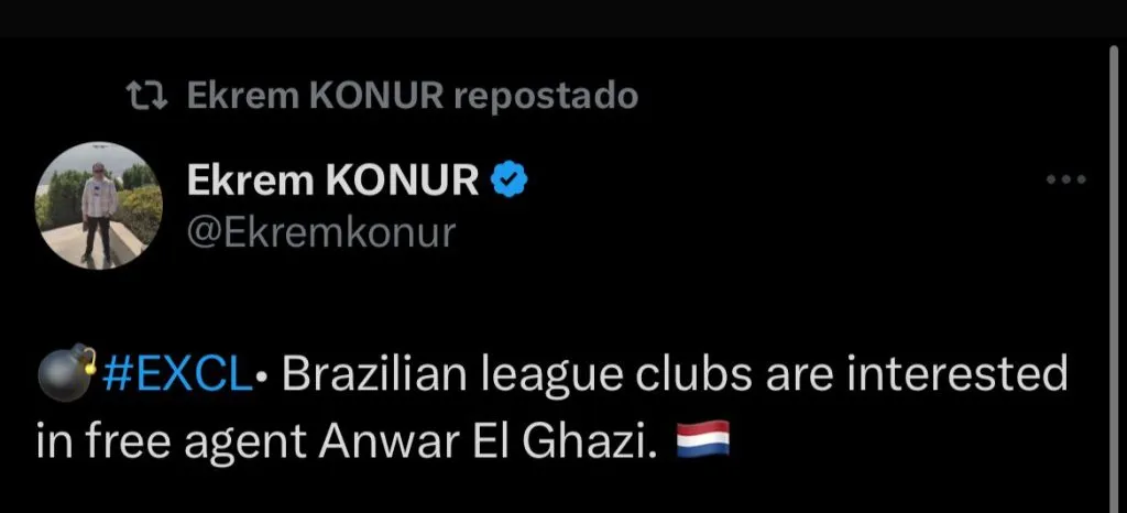 Segundo informações do jornalista Ekrem Konur, clubes do Futebol Brasileiro estão interessados na contratação do atacante Anwar El-Ghazi.