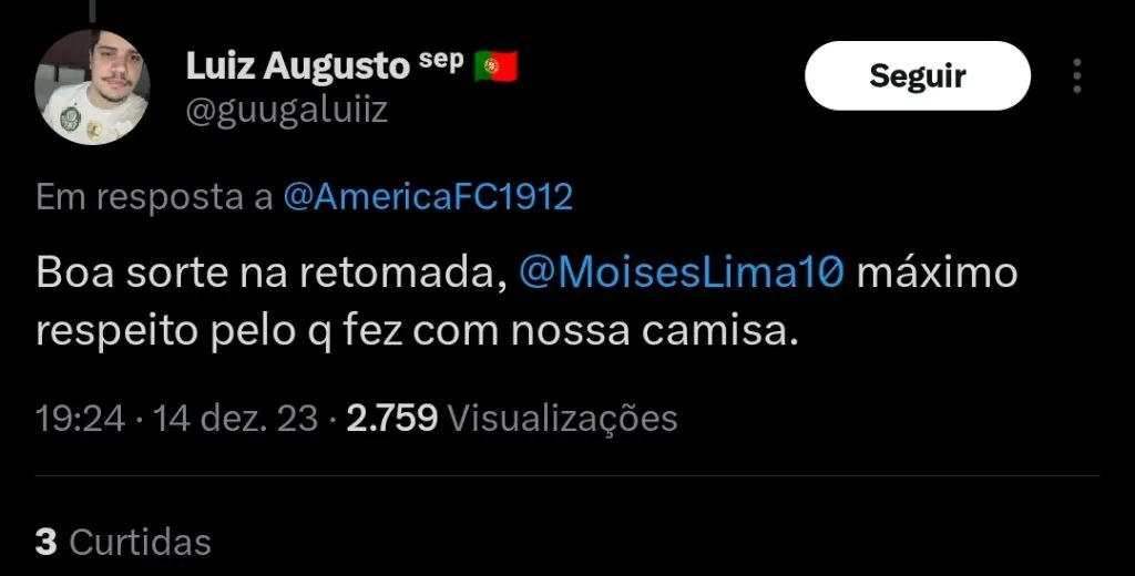 Por meio de suas redes sociais a equipe do América MG confirma que acertou a contratação de Moisés para a próxima temporada.