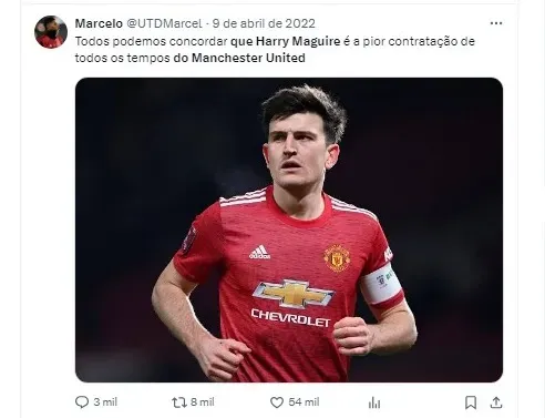 Desde que chegou ao United em agosto de 2019, numa transferência que custou 80 milhões de libras (cerca de R$ 375,8 milhões na época), Maguire não conseguiu se firmar como unanimidade entre os torcedores.