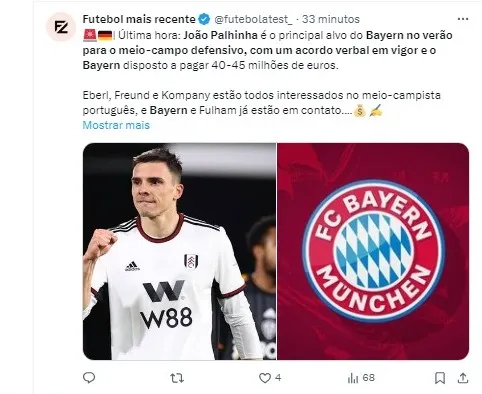 As conversas entre Bayern de Munique e Fulham pela contratação de João Palhinha, estão em andamento, e é provável que o negócio seja fechado por um valor entre 40 e 45 milhões de euros.