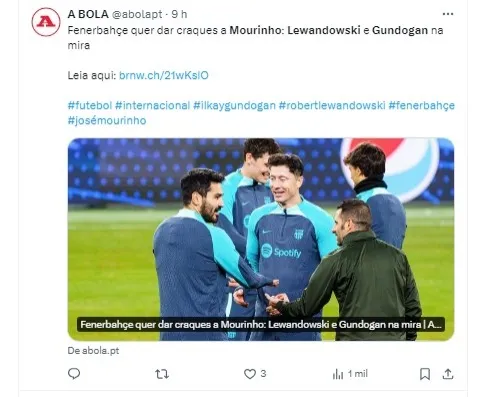 Segundo relatos do jornal turco Fanatik, Mourinho já demonstrou interesse em dois jogadores experientes do Barcelona: Robert Lewandowski e Ilkay Gundogan.