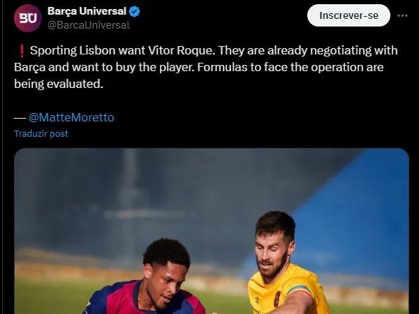 O Sporting apareceu no caminho do Barça para comprar Vitor. A situação atrapalha qualquer time BR que queira concorrer na operação, visto que os valores pedidos giram em 30 milhões de euros (R$ 180 milhões).