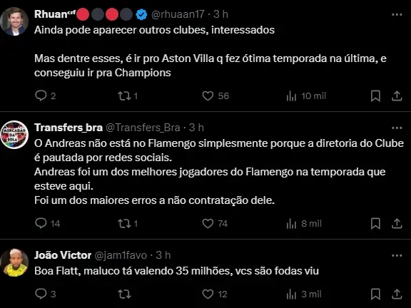 Especulado no Aston Villa, Newcastle e Tonttenham, o ex-Flamengo Andreas Pereira falou sobre o futuro em coletiva de imprensa na Seleção Brasileira, nesta quarta-feira (5).
