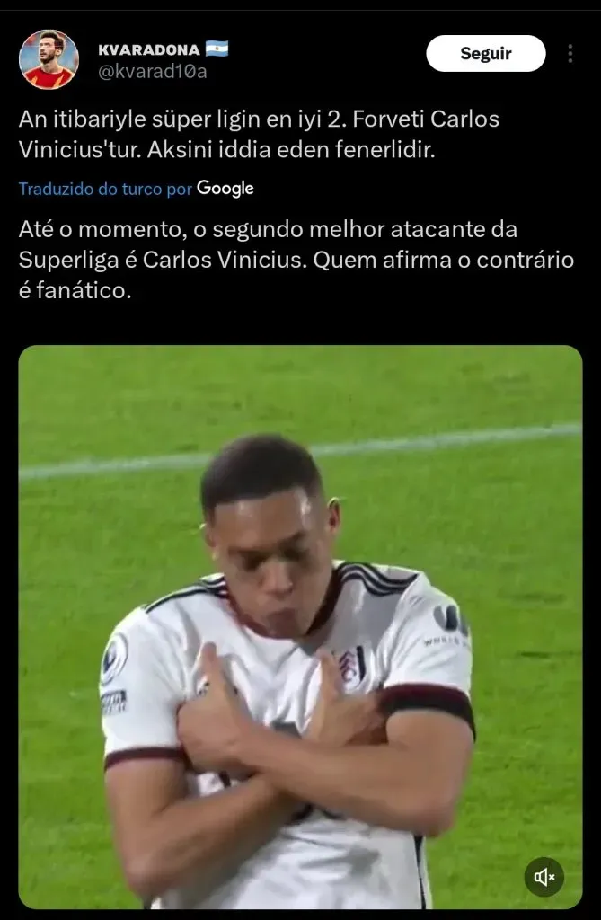 O jornalista Fabrizio Romano informa que o atacante Carlos Vinícius acertou a sua transferência para o Galatasaray.