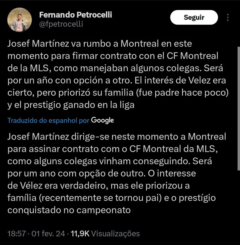 Segundo o jornalista Cesar Luis Merlo, o Montreal Impact chegou a um acordo pela contratação de Josef Martínez.