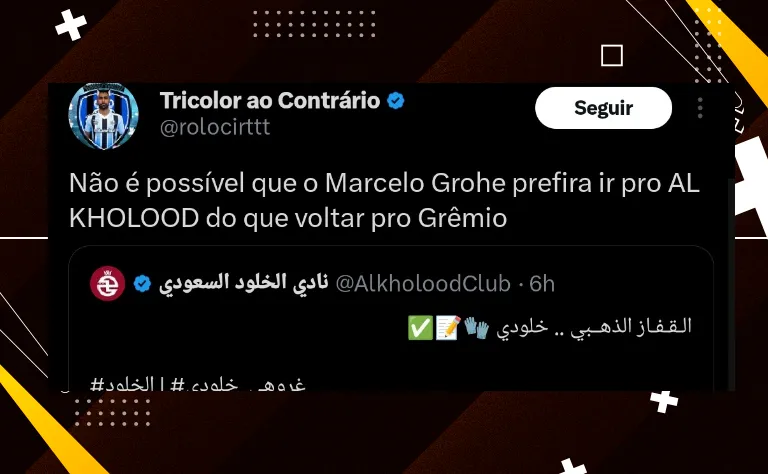 O time do Al-Kholood anunciou neste fim de semana a contratação do goleiro Marcelo Grohe para compor o seu elenco. A equipe da Arábia Saudita chegou a um acordo com o defensor na última semana e espera vê-lo em combate na próxima temporada.