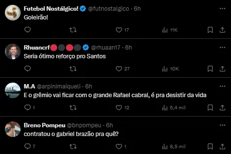 Além do ídolo ex-Grêmio, foi noticiado recentemente, através do portal Diariode1santista que Pedro Rocha, goleiro da Ponte Preta, foi ventilado pelos lados da Vila Belmiro. O goleiro possui contrato com o time do interior paulista até o fim de 2026.