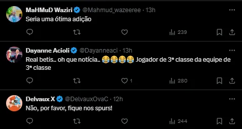 O camisa 18 do Tottenham está sob vínculo com o clube inglês até o fim da próxima temporada. Seu valor de mercado corresponde a 16 milhões de euros (aproximadamente R$ 92 milhões), segundo o Transfermarkt.