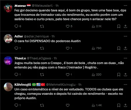 O ex-atacante do São Paulo, Emiliano Rigoni, não teve seu contrato renovado pelo Austin FC, dos Estados Unidos. Dessa forma, o jogador de 31 anos está live para negociar com qualquer clube. A informação foi divulgada pelo The Athletic.