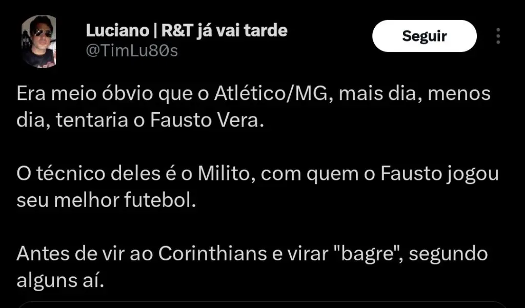 O jornalista Thiago Fernandes informa que o Atlético-MG está muito próximo de fechar a contratação de Fausto Vera.