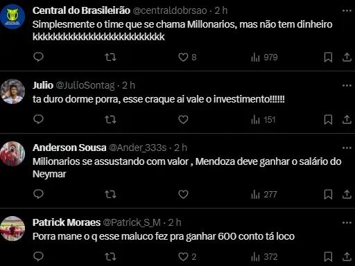 “Mendoza recebe cerca de R$ 600 mil por mês no Santos, valor considerado muito alto pela equipe colombiana”, destaca as informações apuradas pelo comunicador do UOL Esporte.