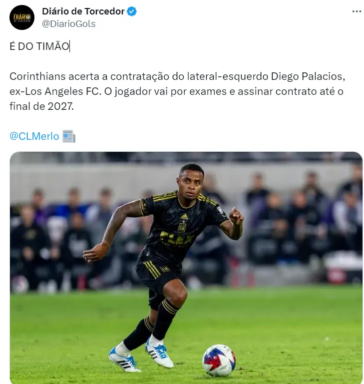 A informação vem de César Luis Merlo. Segundo ele, o atleta é aguardado em São Paulo para passar por exames médicos e assinar contrato com o clube de Itaquera até o ano de 2027.