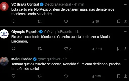 O Plano B já está definido e também é gringo. Trata-se do argentino Nicolás Larcamón, com passagem pelo León. A proposta ao treinador deve ser apresentada nesta semana.