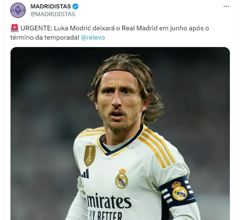 De acordo com informações do jornal Relevo, da Espanha, Modric, de 38 anos de idade, melhor do mundo em 2018, deixará o Real Madrid em julho, quando se encerra a temporada do futebol europeu.