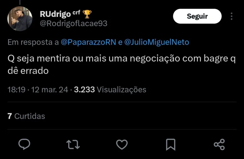 De momento, a torcida do Mengão não se mostra muito a favor da chegada do ponta, principalmente pelas acusações.