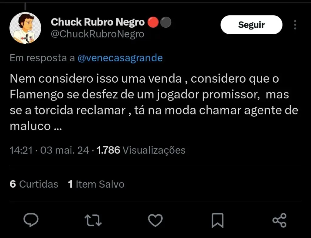O jornalista Venê Casagrande informa que o Flamengo acertou a venda do atacante André Luiz, atacante formado nas suas categorias de base.