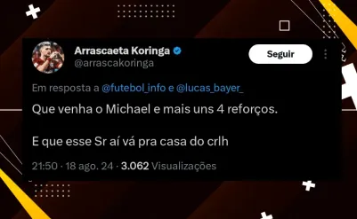 Em entrevista cedida pós jogo nas redondezas do estádio Nilton Santos, o vice-presidente de futebol do Flamengo, Marcos Braz, confirmou o retorno de Michael. O atacante esteve atuando pela equipe do Al Hilal nas últimas duas temporadas.