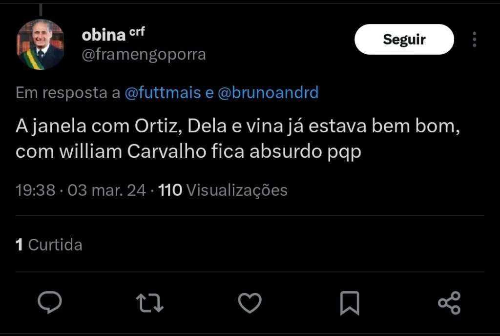O jornalista Bruno Andrade reporta que o Flamengo está em negociações avançadas pela contratação do volante português William Carvalho.