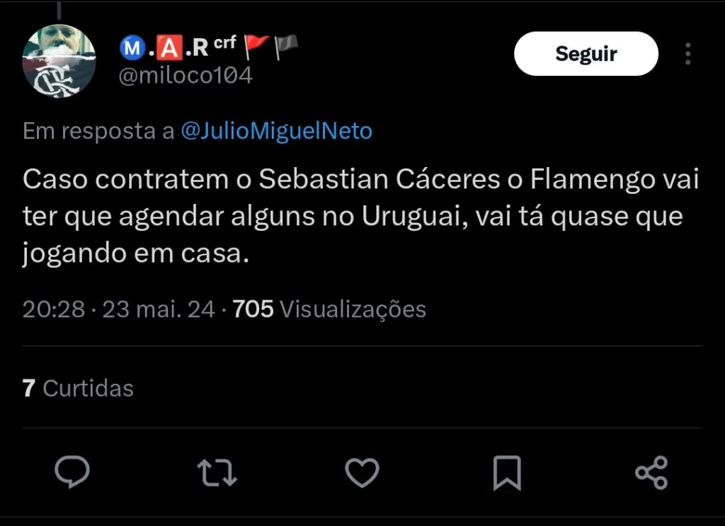 O setorista Júlio Miguel Neto informa queno Flamengo tem interesse na contratação de Sebastián Cáceres.