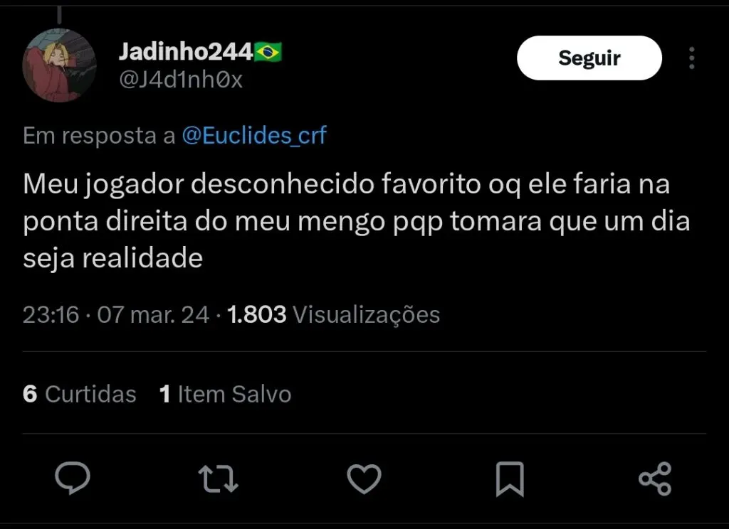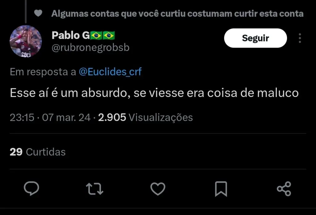 Buscando alternativas para o seu meio de campo, o nome do jogador agradou e bastante a diretoria do Rubro-Negro. Os dirigentes chegaram a abrir negociação, segundo a fonte, mas as conversas não evoluíram.