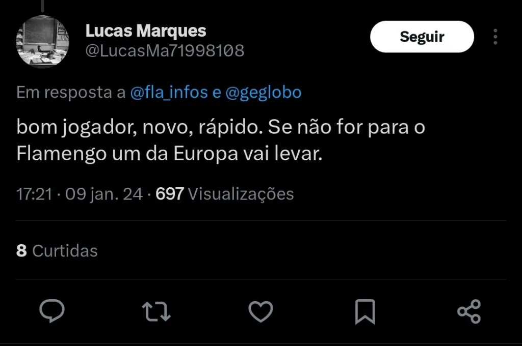 No momento, não existe nenhuma proposta oficial feita por parte da diretoria Rubro-Negra. O defensor é tratado como uma alternativa caso as negociações com Léo Ortiz não tenham uma evolução nas próximas semanas.