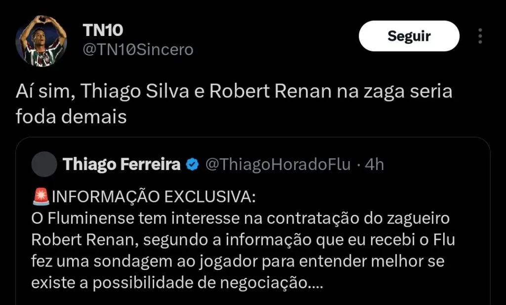 O jornalista Thiago Ferreira informa que o Fluminense tem bastante interesse na contratação do jovem Robert Renan.
