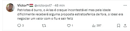 O clube já é dono de 50% dos direitos de John Arias, contudo segue com desejo de adquirir outra parte da porcentagem do jogador. Porém, esbarra no desejo do Patriotas, segundo o GE.