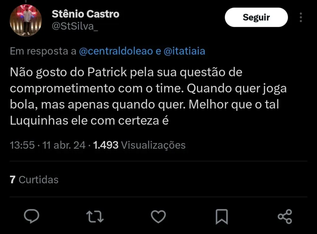 A rádio Itatiaia informa que a diretoria do Fortaleza manifestou interesse na contratação do volante Patrick.