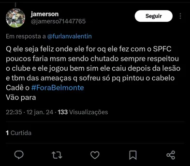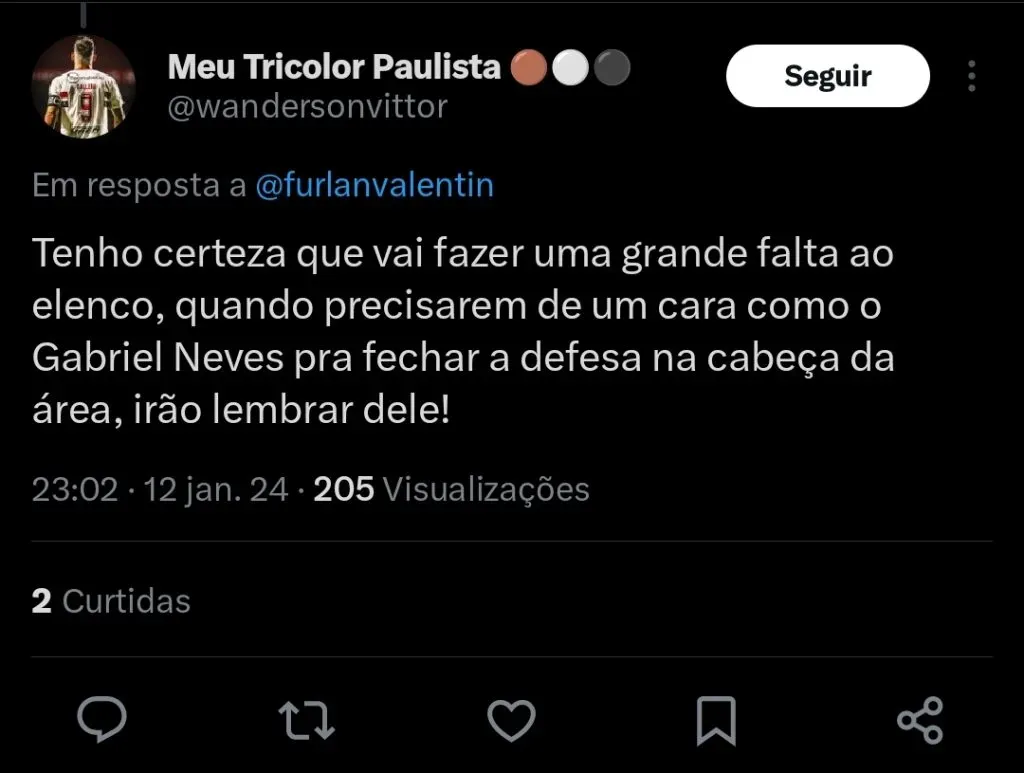 O volante Gabi Neves está deixando o São Paulo após passar algumas temporadas na equipe. Ele não está nos planos da diretoria, e está se despedindo do clube.