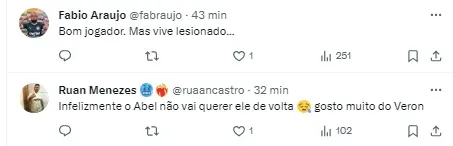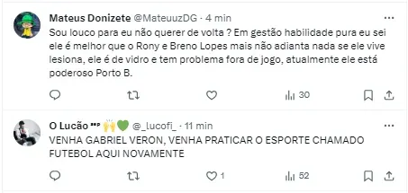 Trata-se do atacante Gabriel Veron, de 21 anos, formado na base do clube. Segundo informações do jornalista Jorge Nicola, o jogador pode estar de volta ao futebol brasileiro.