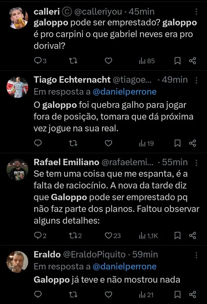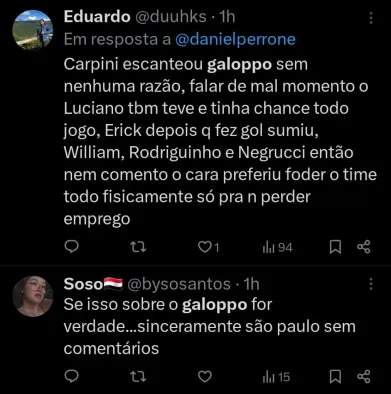 Carpini está sendo bem criticado por preterir o meia. Durante a atual edição do Campeonato Paulista por exemplo, Galoppo soma um gol anotado e sete jogos disputados – de 12 possíveis durante a competição regional.
