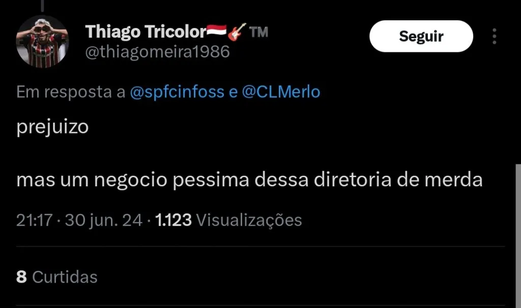 Para que o negócio seja concluído o mais rápido possível, eles ofereceram uma quantia milionária aos dirigentes do Tricolor Paulista. Segundo a fonte, a oferta foi na casa dos U$3 milhões (aproximadamente R$18 milhões) pela chegada em definitivo do atleta.