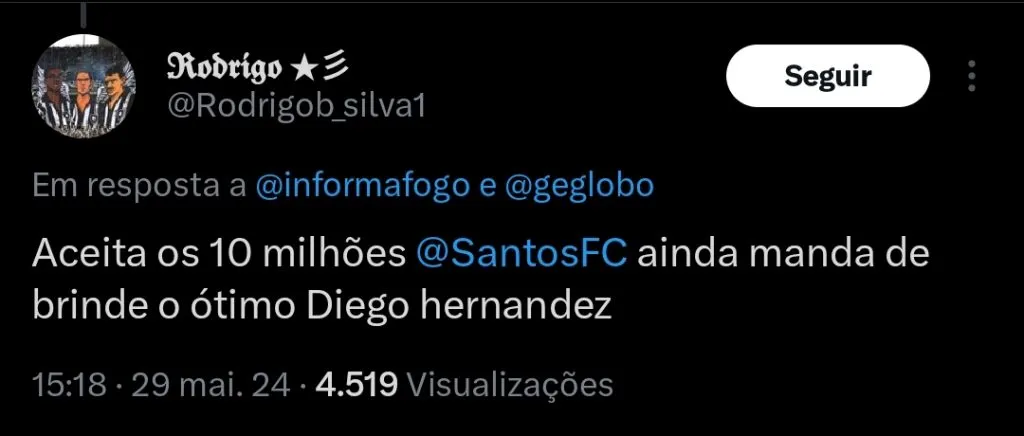 No momento, não há uma proposta ou negociação em andamento, mas já é claro o desejo do Botafogo em contar com o jogador.