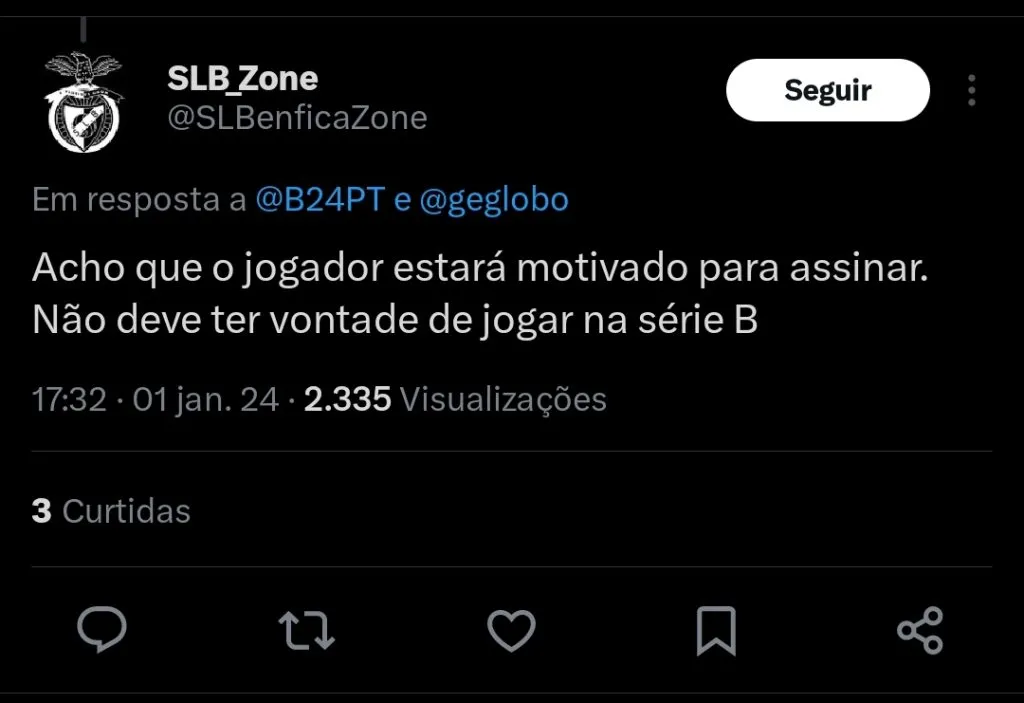 A equipe vem sondando a situação do brasileiro há bastante tempo e sabe da forte concorrência pela sua contratação. Os portugueses não querem dar chances ao rivais, e buscam fazer uma oferta pela sua chegada nos próximos dias.