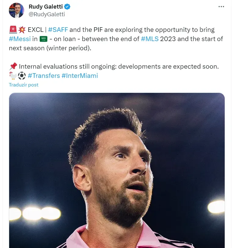 A SAFF (Federação Saudita de Futebol) e o PIF (Fundo de Investimento Público) estão analisando a oportunidade de trazer Lionel Messi para jogar no país em um contrato de empréstimo entre o final de 2023 e o início da próxima temporada de futebol dos Estados Unidos (período de inverno).