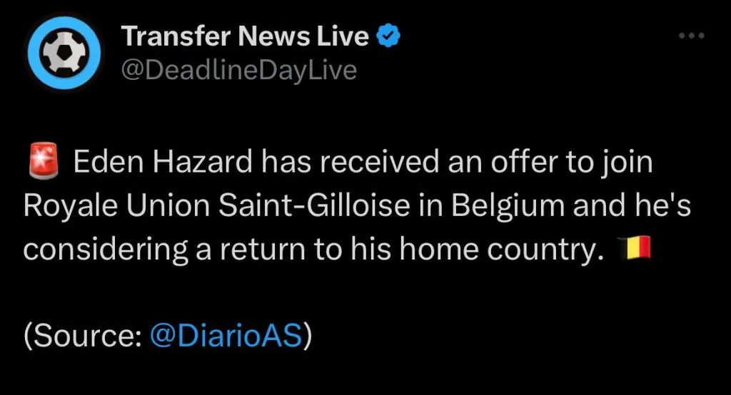 O fato de voltar para seu país natal pode convencer Hazard, que ainda está livre no mercado. O jogador é detentor de grandes feitos e já venceu a Champions League. Aos 32 anos, Hazard foi contratado por cerca de 100 milhões de Euros pelo Real Madrid. Hoje, o Belga tem valor de mercado abaixo dos 10 milhões de Euros