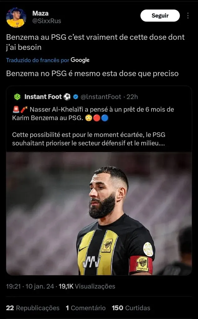 O atacante Karim Benzema foi anunciado como a principal contratação da equipe do Al Ittihad, da Arábia Saudita. Os sauditas ofereceram um salário histórico ao francês, e garantiram sua chegada.