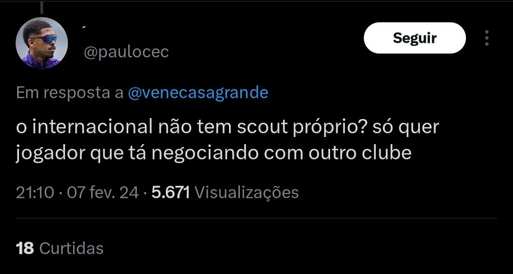 O jornalista Venê Casagrande reporta que o Internacional quer atravessar o Fortaleza para assinar com Bruno Melo.