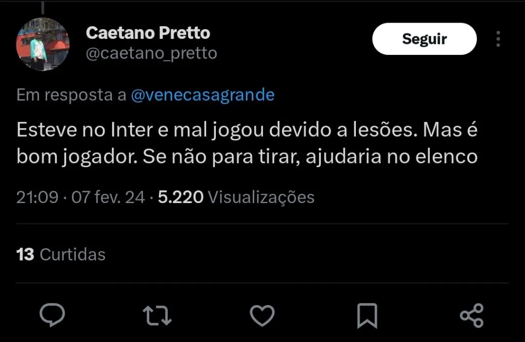 O meio-campista se destacou pelo Coritiba, e se tornou uma contratação bastante disputada nesta janela. Após a comissão técnica dar sinal verde, o Inter tenta se tornar o favorito para assinar a contratação do jogador.
