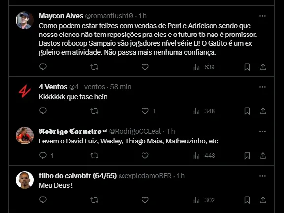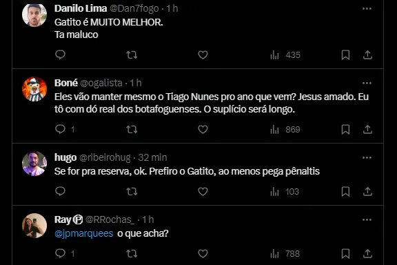 “Sem espaço no Flamengo, o goleiro deseja mais oportunidades em 2024, e o Botafogo de Tiago Nunes sinalizou interesse para substituir Lucas Perri”, completaram os jornalistas Cahê Mota e Fred Gomes.