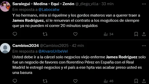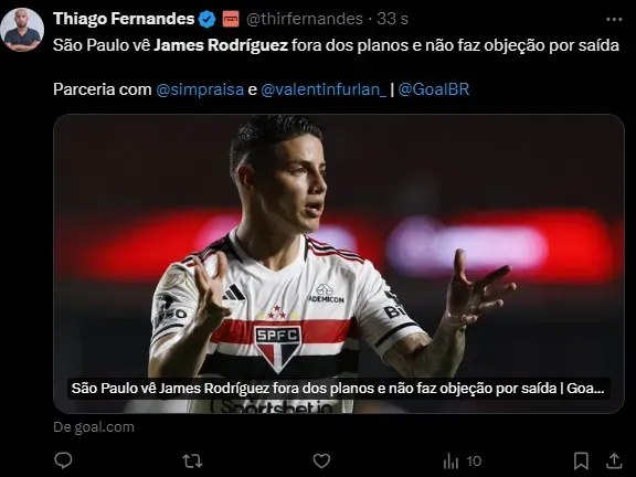 O jornalista Ricardo Martins levantou a possibilidade enquanto falava do goleiro Cássio no Cruzeiro: “Não fique surpreso se James Rodríguez aparecer na Raposa também”, disse.