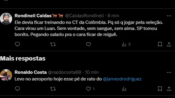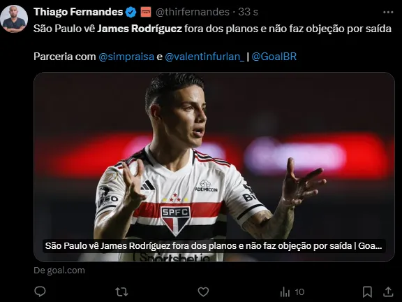 “Só vai jogar se provar que merece” é o mantara adotado por todos os comandantes que passaram pelo comando tricolor nos últimos meses. Diante disso, James só joga na Seleção Colombiana.