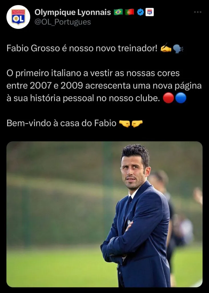 Fabio Grosso foi anunciando como novo treinador do Lyon para a restante da temporada. O ex-lateral substitui Laurent Blanc, que foi demitido na semana passada.