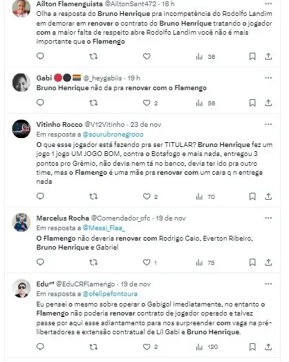 “E, de fato, o Bruno Henrique havia acertado tudo do contrato com o Flamengo. Esse contrato foi levado ao presidente Rodolfo Landim e ele como presidente, é quem dá a palavra final e assina o contrato. Só que, ninguém sabe o motivo, Rodolfo Landim decidiu não assinar esse contrato de renovação com o Bruno Henrique, pelo menos até agora”, informou Nicola.