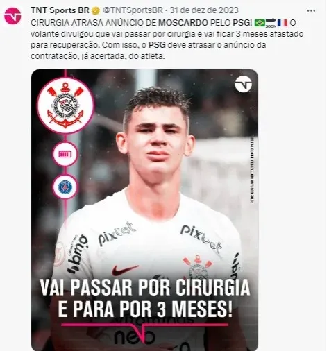 Enquanto Moscardo se recupera no CT do Corinthians nos próximos três meses, o jovem volante, planeja se juntar ao elenco do PSG após o período de recuperação.