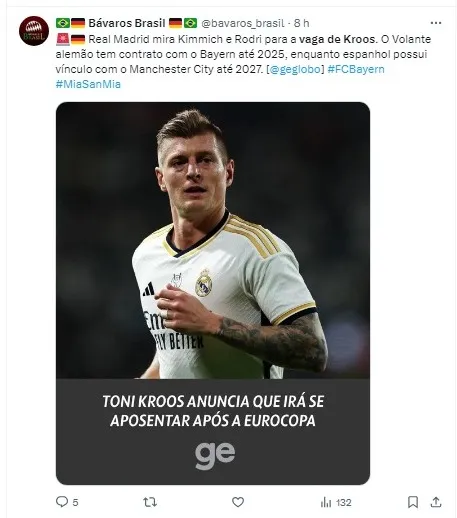 O renomado meio-campista alemão Toni Kroos anunciou que se aposentará do futebol profissional após a Eurocopa 2024. Kroos, que joga pelo Real Madrid, já vinha mencionando a possibilidade de aposentadoria nos últimos anos, mas agora confirmou que sua saída é definitiva.