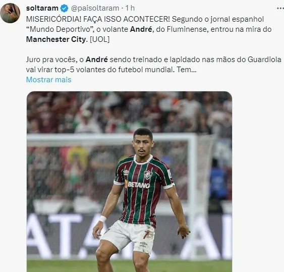 Após o confronto na final da Copa do Mundo de Clubes da Fifa entre o Fluminense e o Manchester City, o técnico Pep Guardiola elogiou os jovens talentos do time de Fernando Diniz, destacando André como um dos mais notáveis.