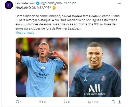 Diante das dificuldades no ‘caso Mbappé’, o Real Madrid estaria adotando a mesma estratégia bem-sucedida utilizada para contratar Jude Bellingham. O clube estaria em contato direto com pessoas próximas a Haaland, enquanto delega a terceiros as negociações com o City.