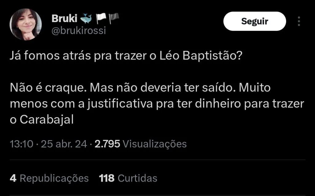 No momento, o nome do centroavante é analisado pela diretoria e a comissão técnica do clube. Nenhuma negociação foi aberta até o momento, e as tratativas parecem estar em fase inicial até então.