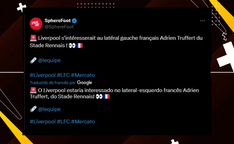 Isso porque o gigante clube inglês busca um substituto a longo prazo para o lateral-esquerdo da equipe, Andy Robertson. E os Reds já têm um jogador na mira. Trata-se de Adrien Truffert, jovem francês que atua pelo Rennes.